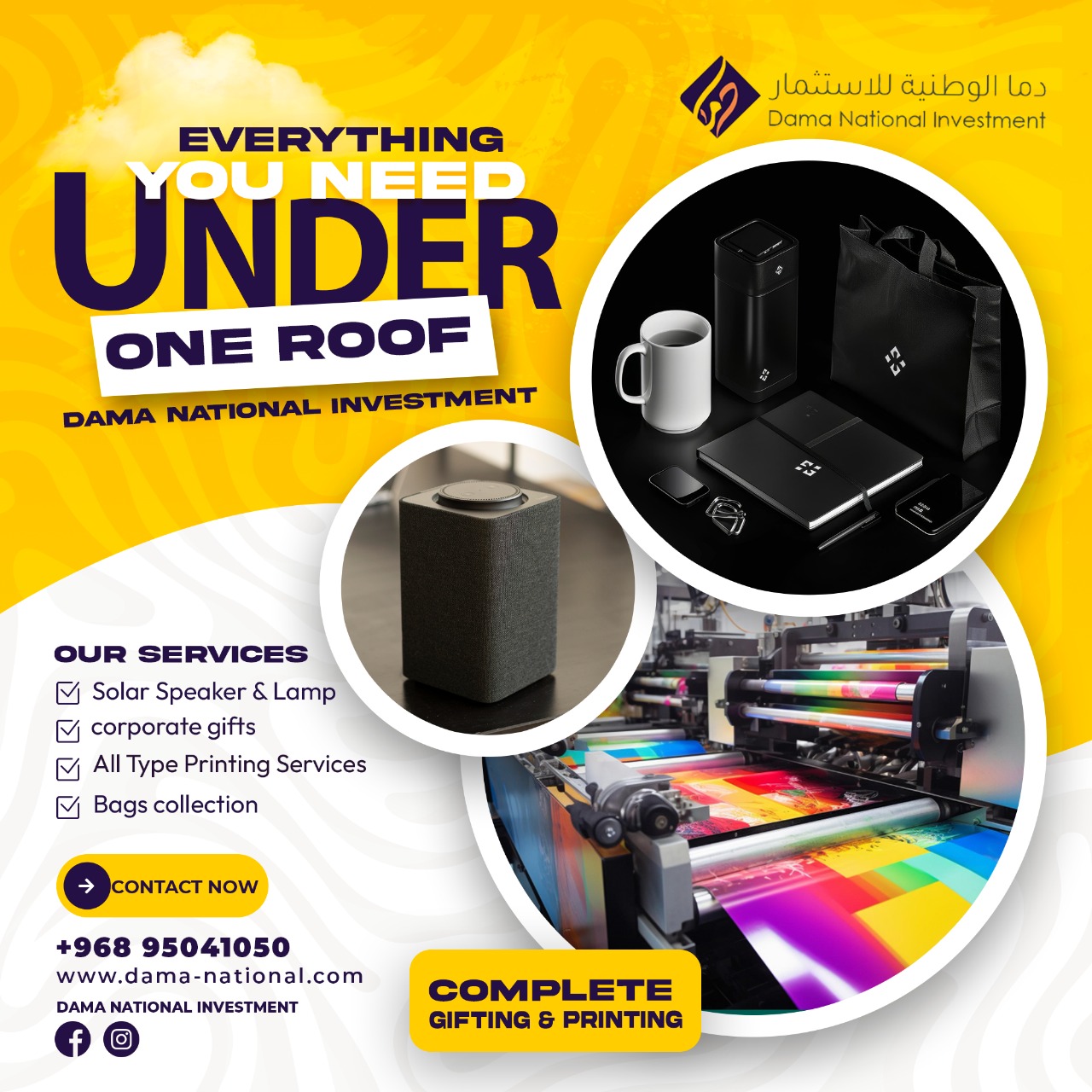 Dama National Investment is an SME Company established in 2007 to supply gift items with printing solutions. We are one of the leading trading companies in Oman with vast experience in the field of Corporate & Promotional Gifts and Printing Services.